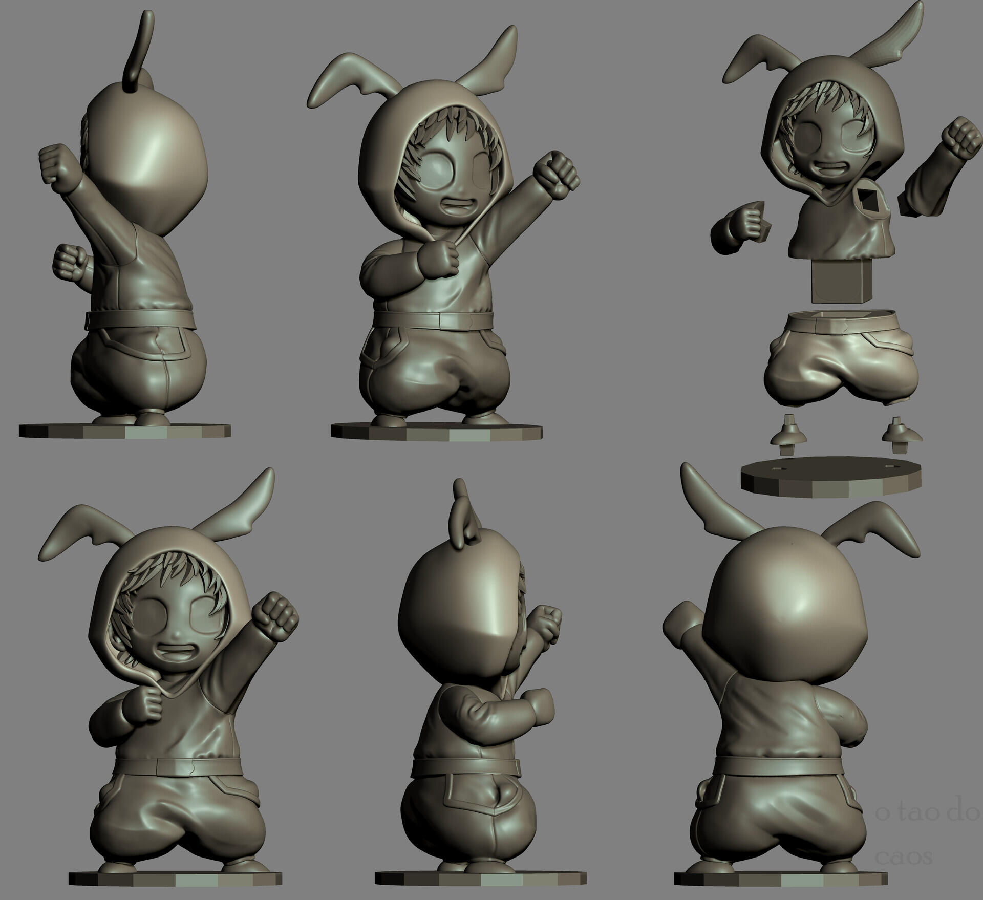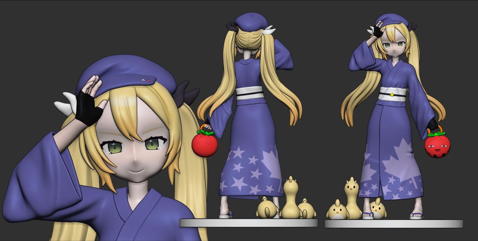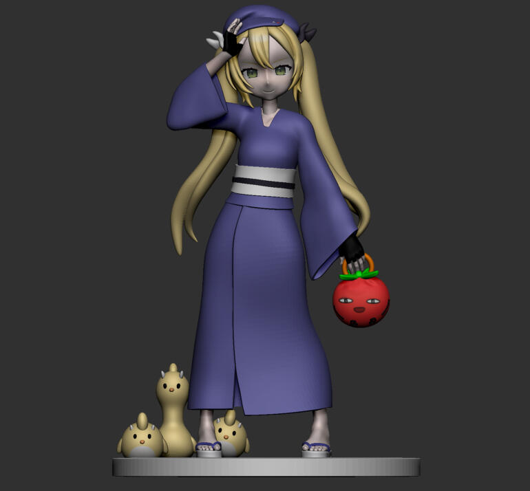 This package includes a full-body 3D sculpt of your character with basic clothing and accessories, ready for 3D printing.